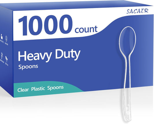 SACATR 1000 Count Clear Plastic Spoons Bulk - Plastic Silverware Spoons Heavy Duty, Premium Disposable Spoons, BPA-Free, Heat Resistant, Suitable for Parties, Events, and Everyday Use