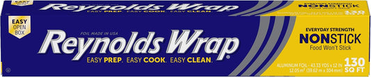 Reynolds Wrap Non Stick Aluminum Foil, Nonstick Aluminum Foil Roll, Prevents Food Sticking and Messy Cleanup, Great for Covering Casseroles and leftovers, 43.33 Yards x 12 Inches, 130 Sq.Ft.