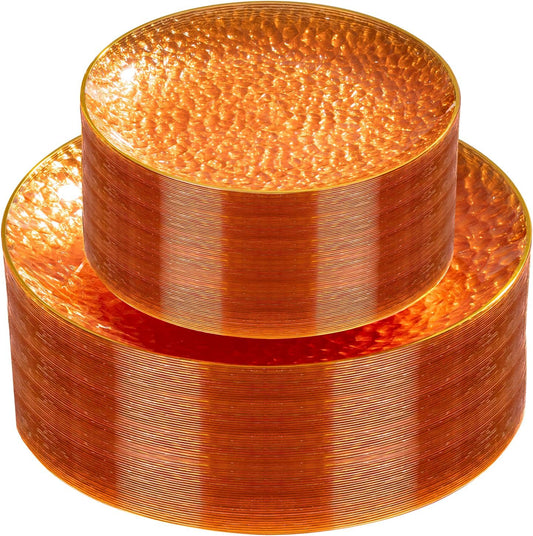 Rubtlamp 60Pcs Clear Plastic Plates,Clear Disposable Plates With Gold Rim,Heavy-duty Gold Plates,Hammered Party Plates Include 30Clear Dessert-Platos,30Dinner-Platos for Wedding, Party