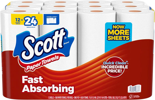 Scott Paper Towels, Choose-A-Sheet, 6 Double Rolls = 12 Regular Rolls (108 Sheets Per Roll)