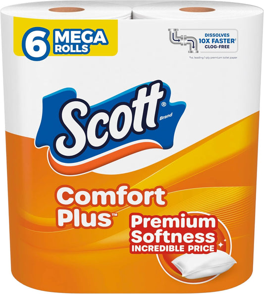 Scott ComfortPlus Toilet Paper, 12 Triple Rolls, 231 Sheets per Roll, Septic-Safe, 1-Ply Toilet Tissue