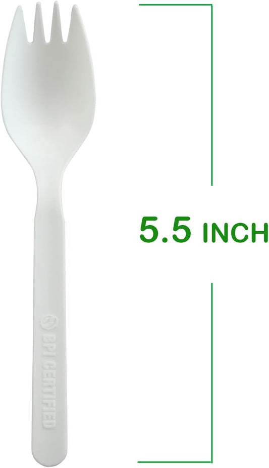 GreenWorks Compostable CPLA Sporks,100 Count 5.5" Disposable Cutlery Spork (Spoon Fork)