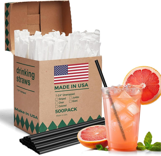 Glotoch Express 500PCS Individually Wrapped Clear Plastic Straws, 7.75'' Long, 0.24'' Diameter Disposable Drinking Straws for Every Occasion, Party, Made in USA