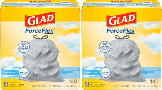 Glad ForceFlex Tall Kitchen Trash Bags, 13 Gallon, Fresh Clean, 140 Count (Package May Vary)