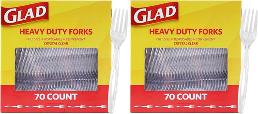 Glad Clear Heavy Duty Plastic Forks, Reduced-Plastic Open Handle, Break-Resistant Disposable or Top-Rack Reusable Cutlery for Parties, Camping & Everyday Meals, Standard Size, 70 Count