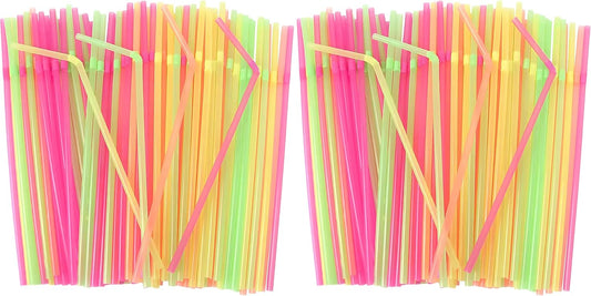Flexible Plastic Straws Disposable, Vibrant & Colorful Assortment Bendy, Stylish Drinking Straws for Every Occasion & Party Decoration, 175 Count