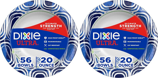 Dixie Ultra, Large Paper Bowls, 20 Oz, 56 Count, Microwave Safe, Compostable, Disposable Bowls Great For Breakfast, Lunch, And Dinner Meals
