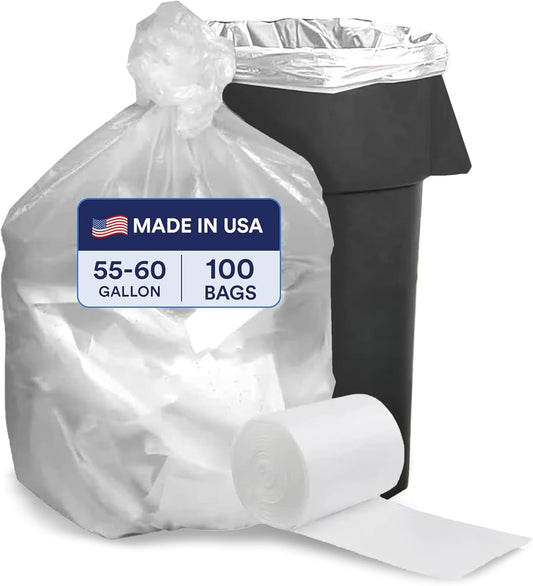 Plasticplace 55-60 Gallon Trash Bags, Heavy Duty Black Garbage Bags, 100 Count for Lawn, Yard, and Outdoor Waste Disposal, Ideal for Industrial Trash Cans, Contractors, and Home Improvement Projects