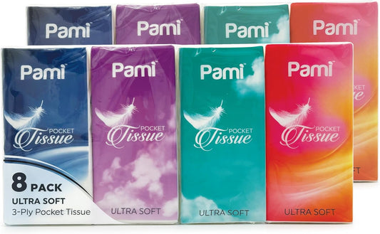 PAMI Ultra-Soft 3-Ply Pocket Tissues, Small Packs of Tissues for Purse, Strong & Absorbent Facial Wipes (Pack of 8 10 Count (Pack of 8))