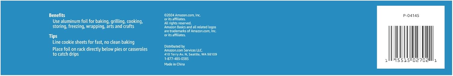 Amazon Basics Aluminum Foil for Cooking, Roasting and Food Wrap, 175 Sq Ft, Pack of 2